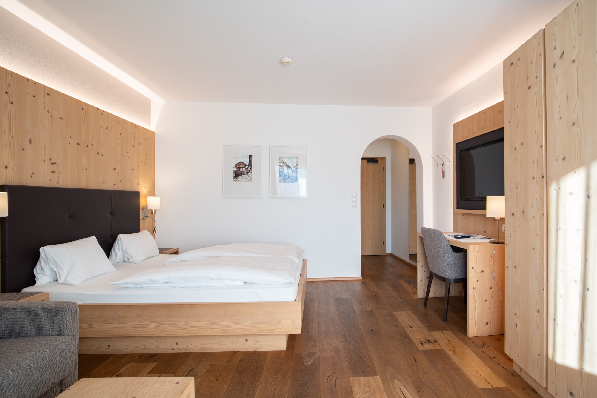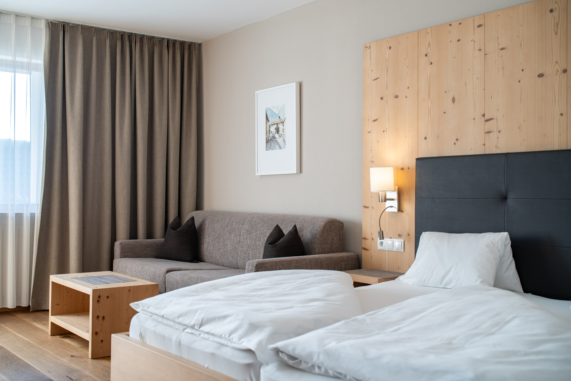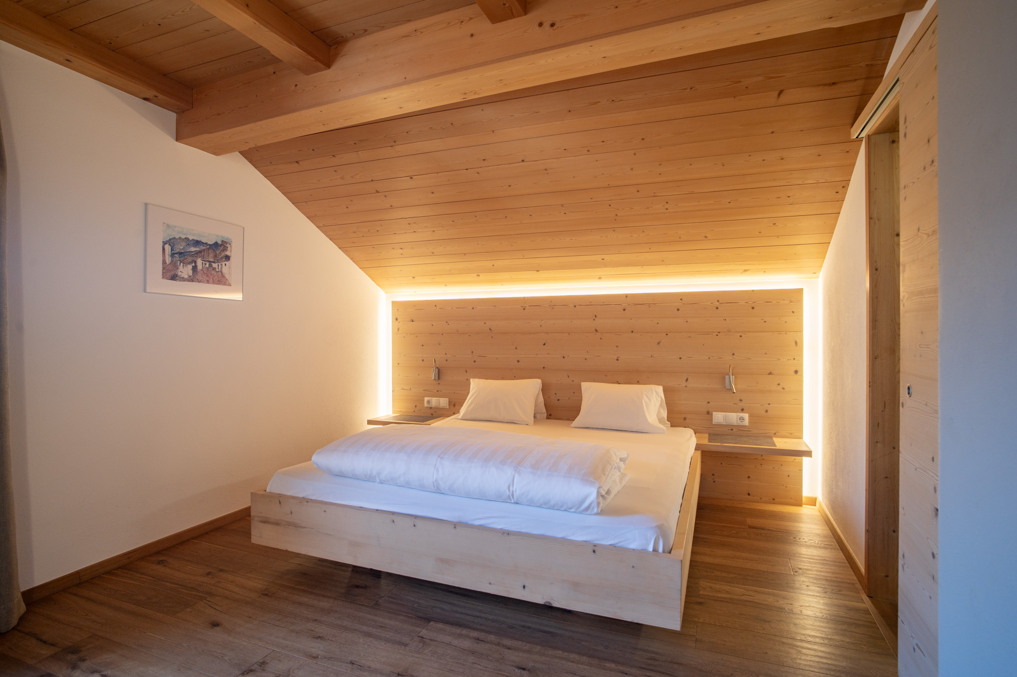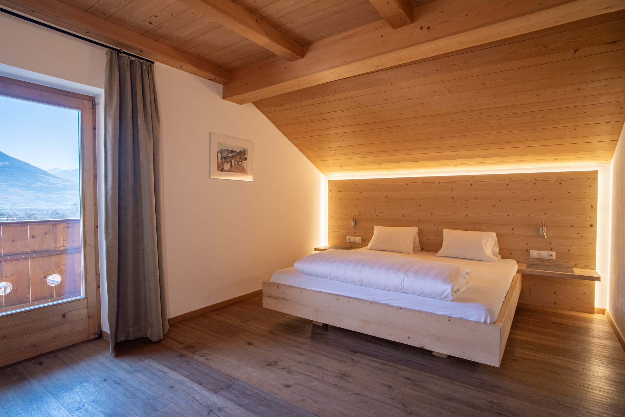 Erleben Sie pure Erholung in unseren großzügigen, lichtdurchfluteten Zimmern – liebevoll eingerichtet mit natürlichen Holzmöbeln und einer warmen, alpinen Atmosphäre. Jedes Zimmer ist ein Rückzugsort mit viel Raum zum Durchatmen, Träumen und Wohlfühlen – ruhig gelegen und mit Blick auf die Vinschger Bergwelt.